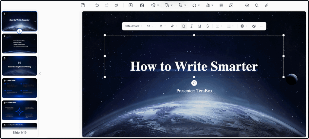 In just a few seconds, the TeraBox AI Presentation Maker will create your presentation. Check it carefully after it is generated. You can alter and personalize your presentation if necessary.